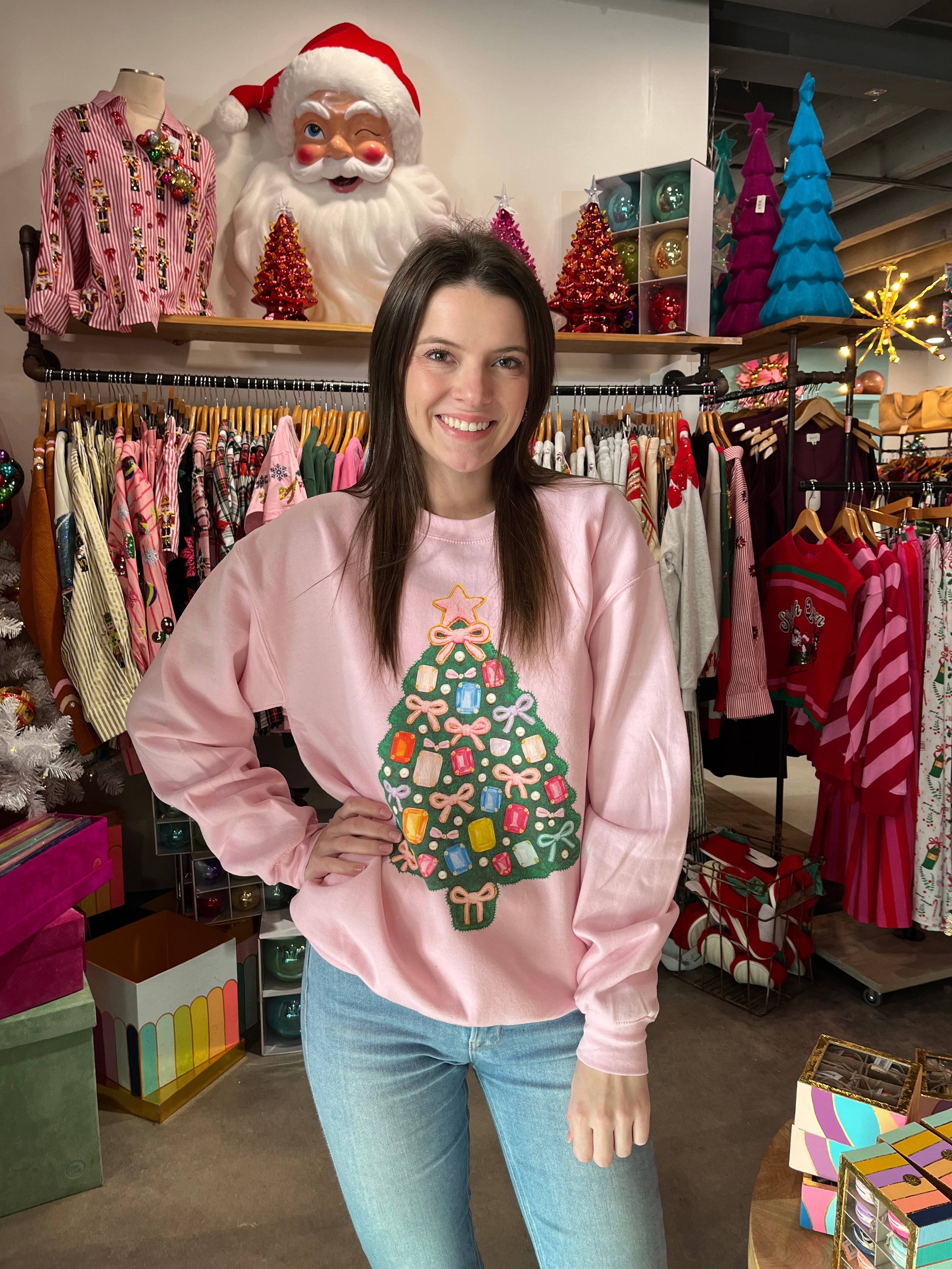 Sparkle through the season in this light pink Christmas rhinestone tree sweatshirt, where festive glamour meets everyday comfort. The shimmering rhinestone tree design catches the light beautifully, adding a touch of elegance and sparkle to your holiday wardrobe. Soft and cozy, this sweatshirt lets you celebrate in style without sacrificing comfort, making it perfect for holiday parties, casual gatherings, or simply spreading seasonal cheer. The delicate pink hue pairs beautifully with any outfit, while the eye-catching rhinestone details ensure you'll stand out with understated sophistication. Treat yourself to a piece that combines festive joy with wearable luxury.