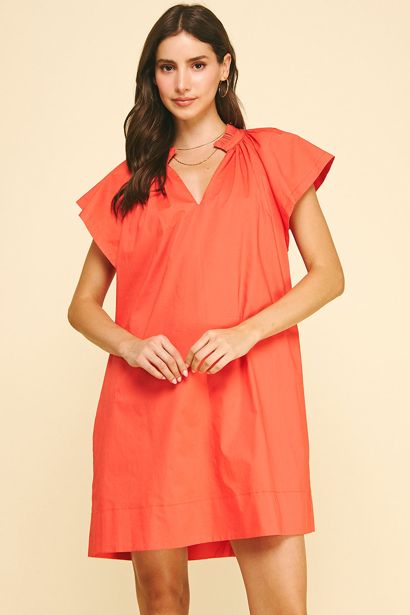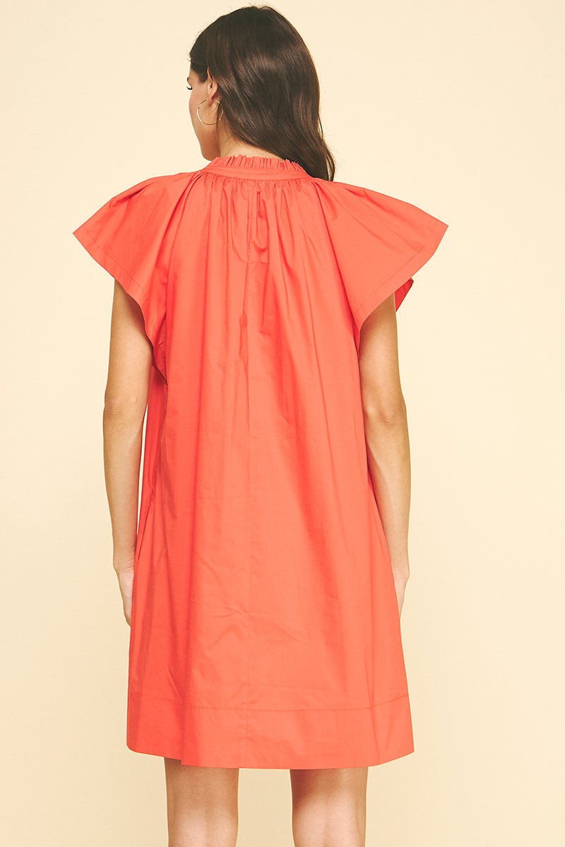 Elevate your wardrobe with this charming coral tunic mini dress, featuring delicate ruffle detailing that adds movement and dimension. The relaxed tunic silhouette offers comfortable everyday wear, while the vibrant coral hue brings warmth and personality to any outfit. Perfect for casual outings, weekend adventures, or layering with your favorite accessories. The ruffled accents create visual interest and a playful, feminine touch that works beautifully on its own or paired with boots and a denim jacket.