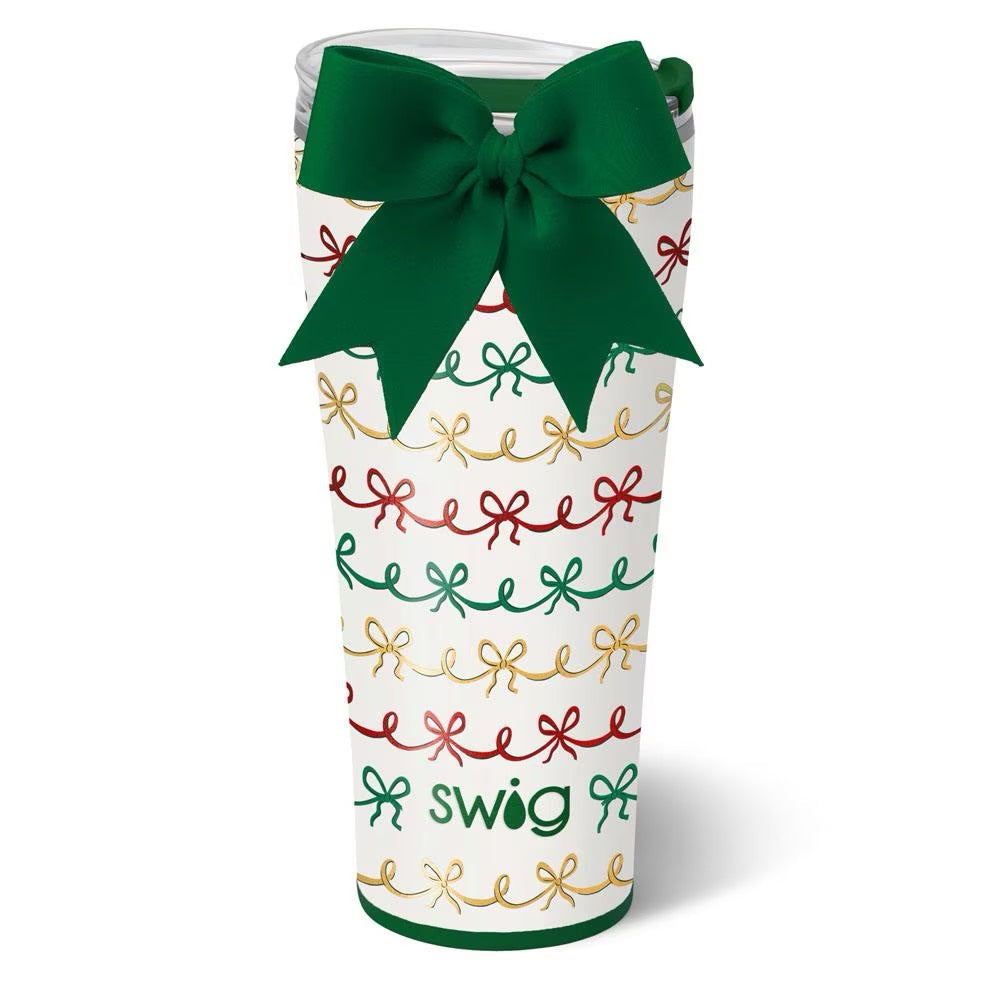 Enjoy your favorite holiday drinks in style with the Swig Christmas Bows 32oz Tumbler. Designed to keep beverages hot or cold for hours, this festive tumbler features a vibrant Christmas bow pattern that adds a cheerful touch to any occasion. Its durable, insulated construction ensures your drinks stay just right while on the go or at home. Perfect for gifting or treating yourself this holiday season, it combines practicality with seasonal charm seamlessly.