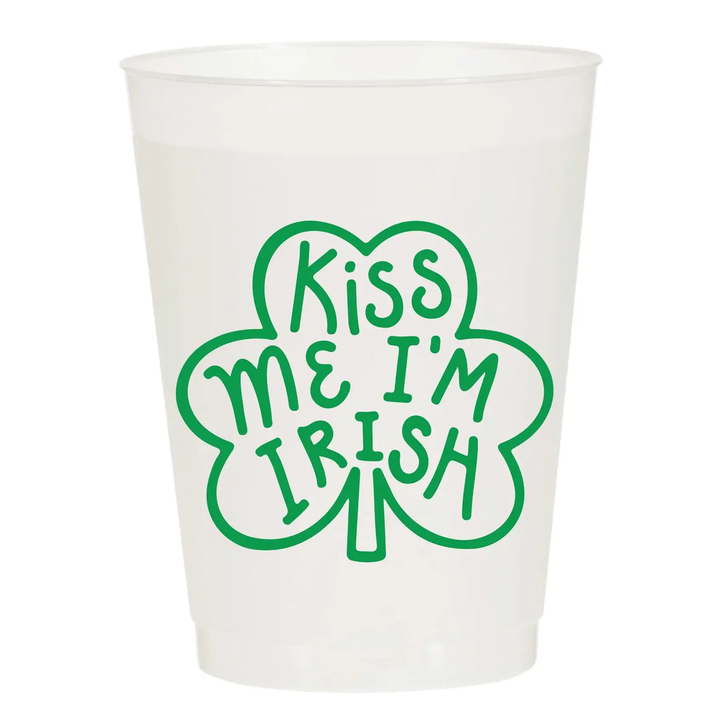 Celebrate St. Patrick's Day in style with these festive frosted foam cups featuring the playful "Kiss Me I'm Irish" design. Perfect for parties, gatherings, and holiday celebrations, these cups add a fun touch to any beverage service. The frosted finish provides a premium look while keeping drinks at the ideal temperature. Stock up for your St. Patrick's Day bash or grab a set for year-round entertaining. Sleeve of 6 cups.