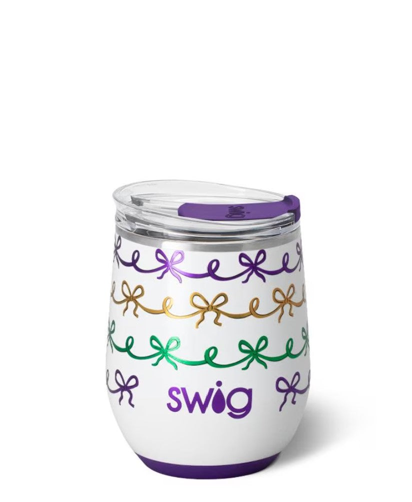 Celebrate in style with this vibrant Mardi Gras Bows stemless wine cup, perfectly sized at 12oz for your favorite beverages. Featuring festive bow designs in classic Mardi Gras colors, this durable cup keeps drinks at the ideal temperature while adding a playful touch to any gathering. Whether you're hosting a themed party or enjoying a casual night out, this eye-catching cup makes every sip more memorable. Ideal for wine lovers who refuse to compromise on fun and functionality.