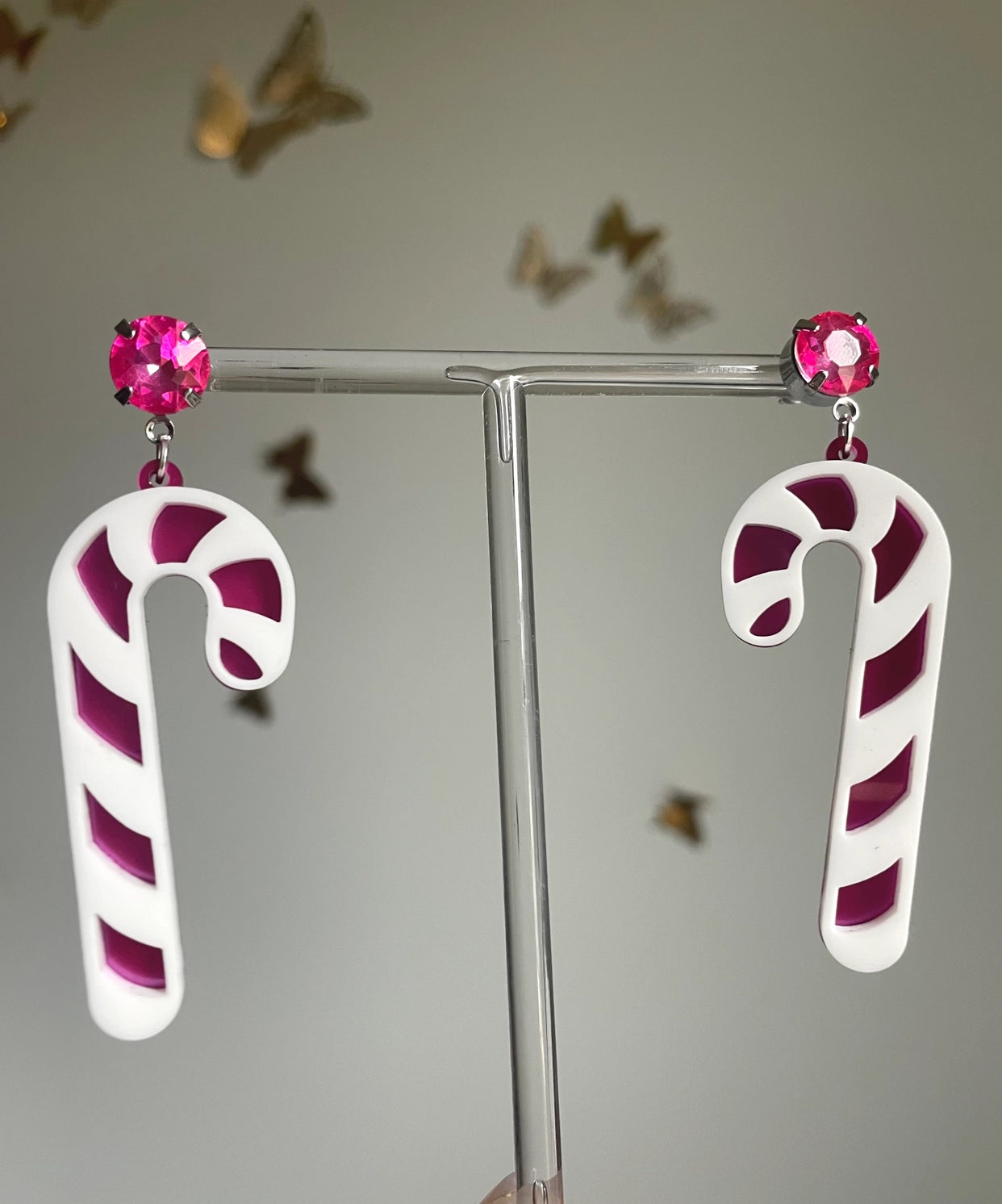 Spread holiday cheer with these eye-catching magenta pink candy cane acrylic earrings. Lightweight and comfortable for all-day wear, these festive accessories bring playful charm to any outfit. The vibrant striped design captures the spirit of the season while the durable acrylic construction ensures they'll stay looking fresh. Perfect for holiday parties, gift exchanges, or adding a pop of color to your everyday look. Make a sweet statement this season.