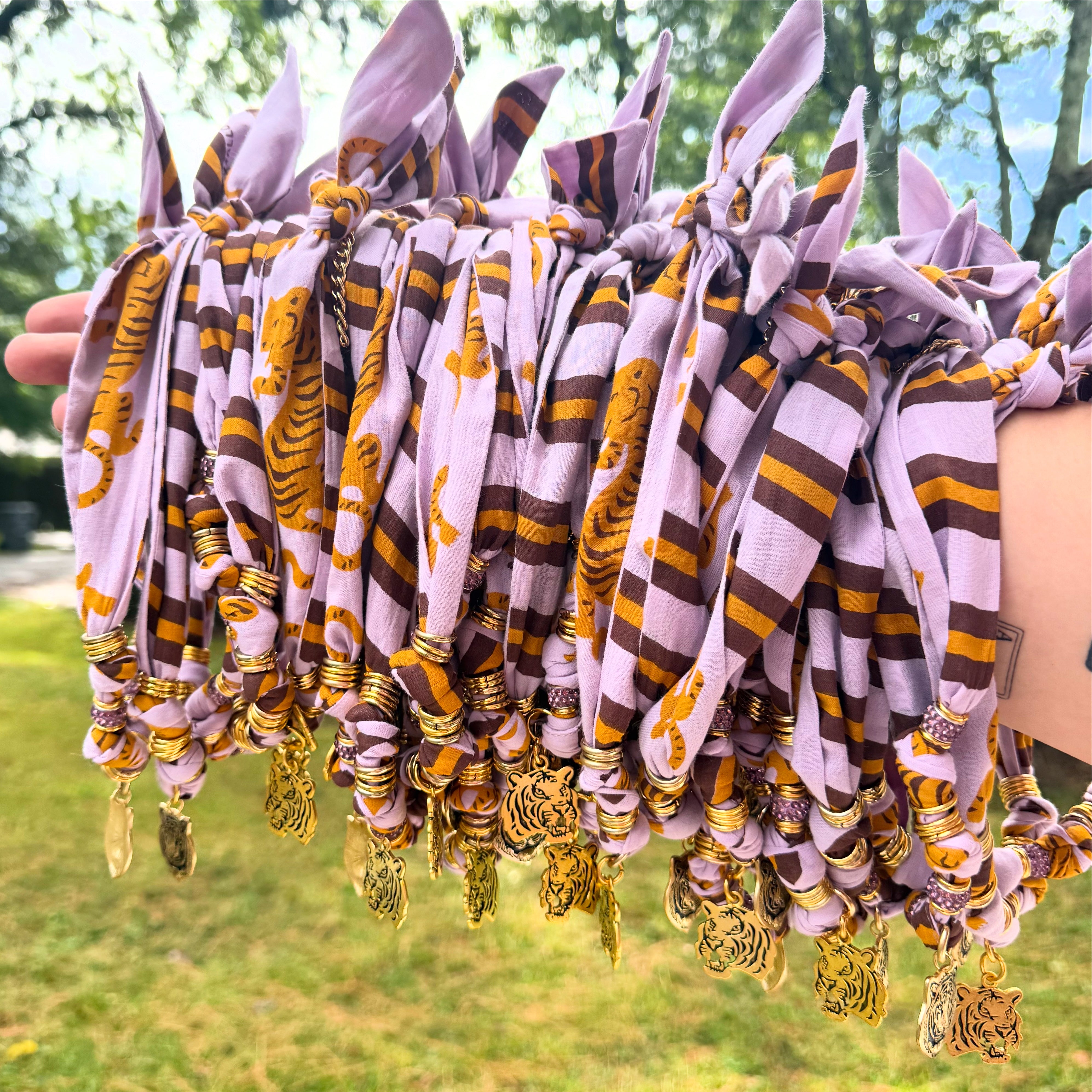Elevate your style with the Tiger Print Scarf Necklace featuring a striking gold tiger pendant. This unique accessory combines the boldness of a tiger print scarf with the elegance of a detailed gold charm, making it perfect for adding a fierce yet sophisticated touch to any outfit. Lightweight and versatile, it effortlessly enhances both casual and formal looks, letting you express your wild side with confidence and grace.