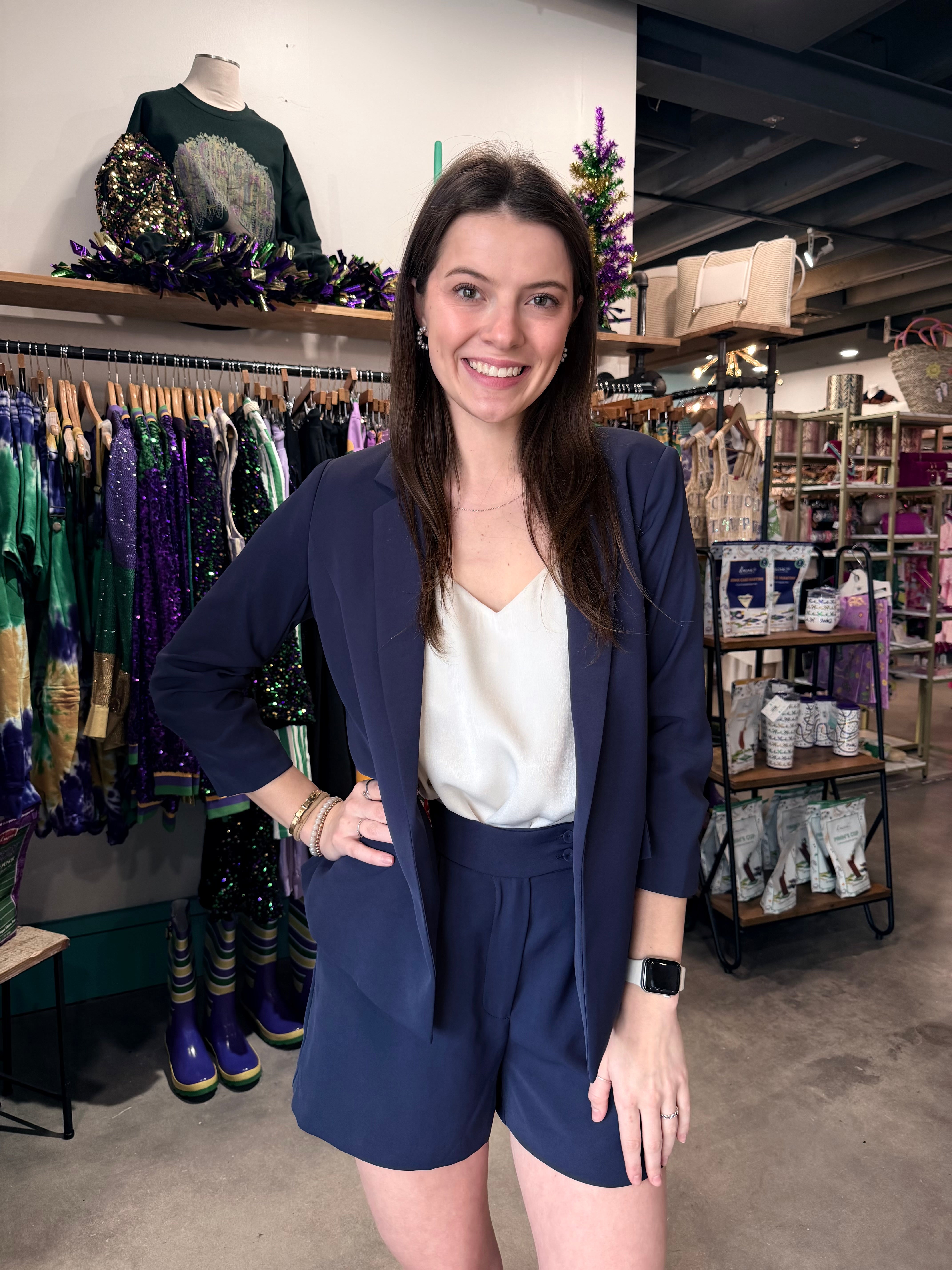 Elevate your workwear with this sophisticated oxford blue blazer, designed to turn heads in any setting. The signature shirred sleeves add an unexpected touch of elegance and movement, transforming a classic silhouette into something distinctly modern. Perfect for the office, client meetings, or weekend styling, this versatile piece layers beautifully over dresses, tees, and blouses. The crisp oxford blue hue complements virtually any complexion and pairs effortlessly with neutrals or bold accents. Invest in a blazer that works as hard as you do—polished, refined, and undeniably chic.