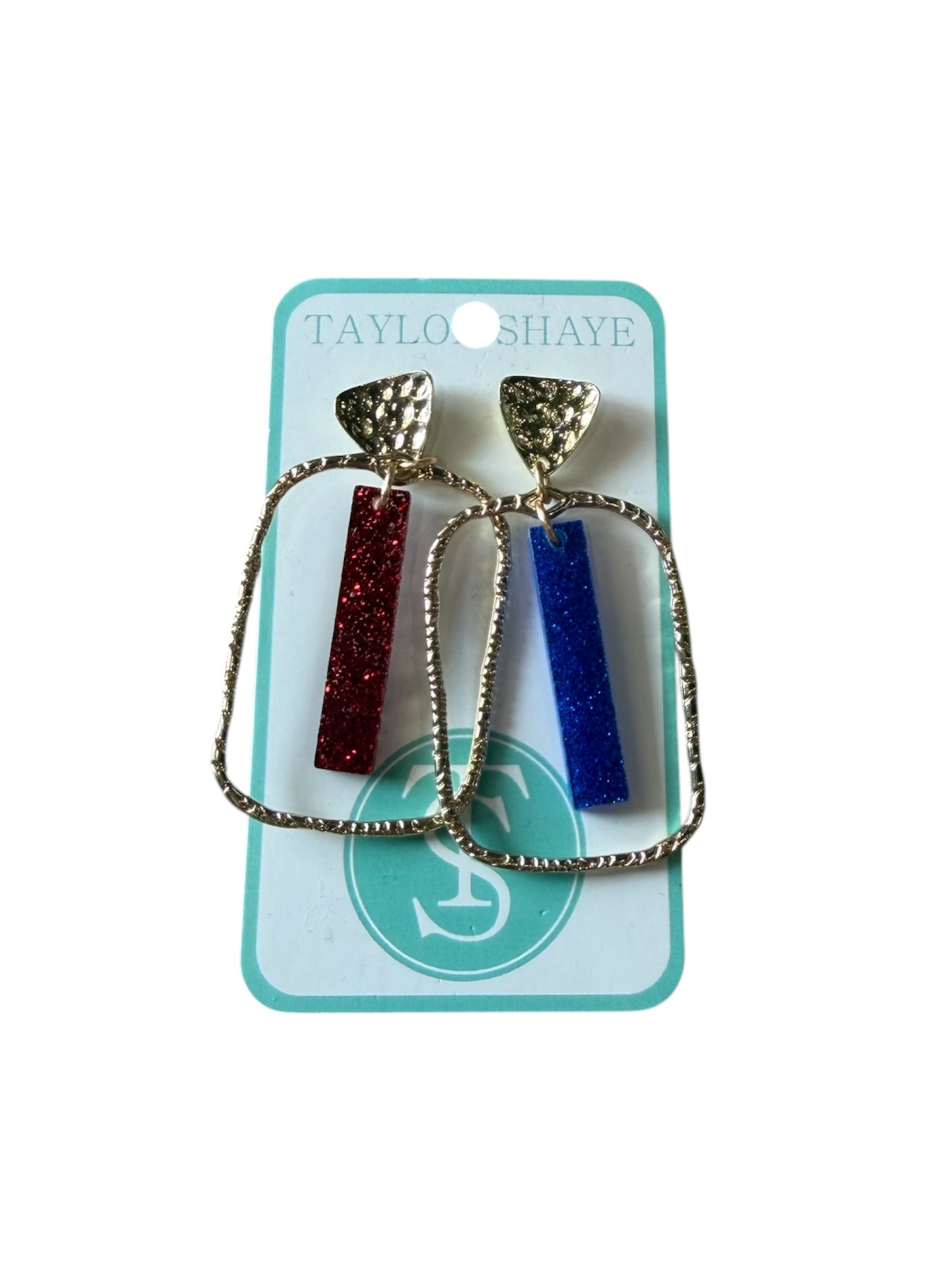 Make a bold statement with these striking Taylor Shaye Rectangle Hoops, where vibrant red and blue hues meet luxe gold accents. The geometric rectangular silhouette offers modern sophistication, while the rich color blocking adds personality to any look. Perfect for elevating everyday outfits or completing your special occasion ensemble, these hoops deliver eye-catching style that transitions seamlessly from day to night. A versatile piece that celebrates confidence and individuality.