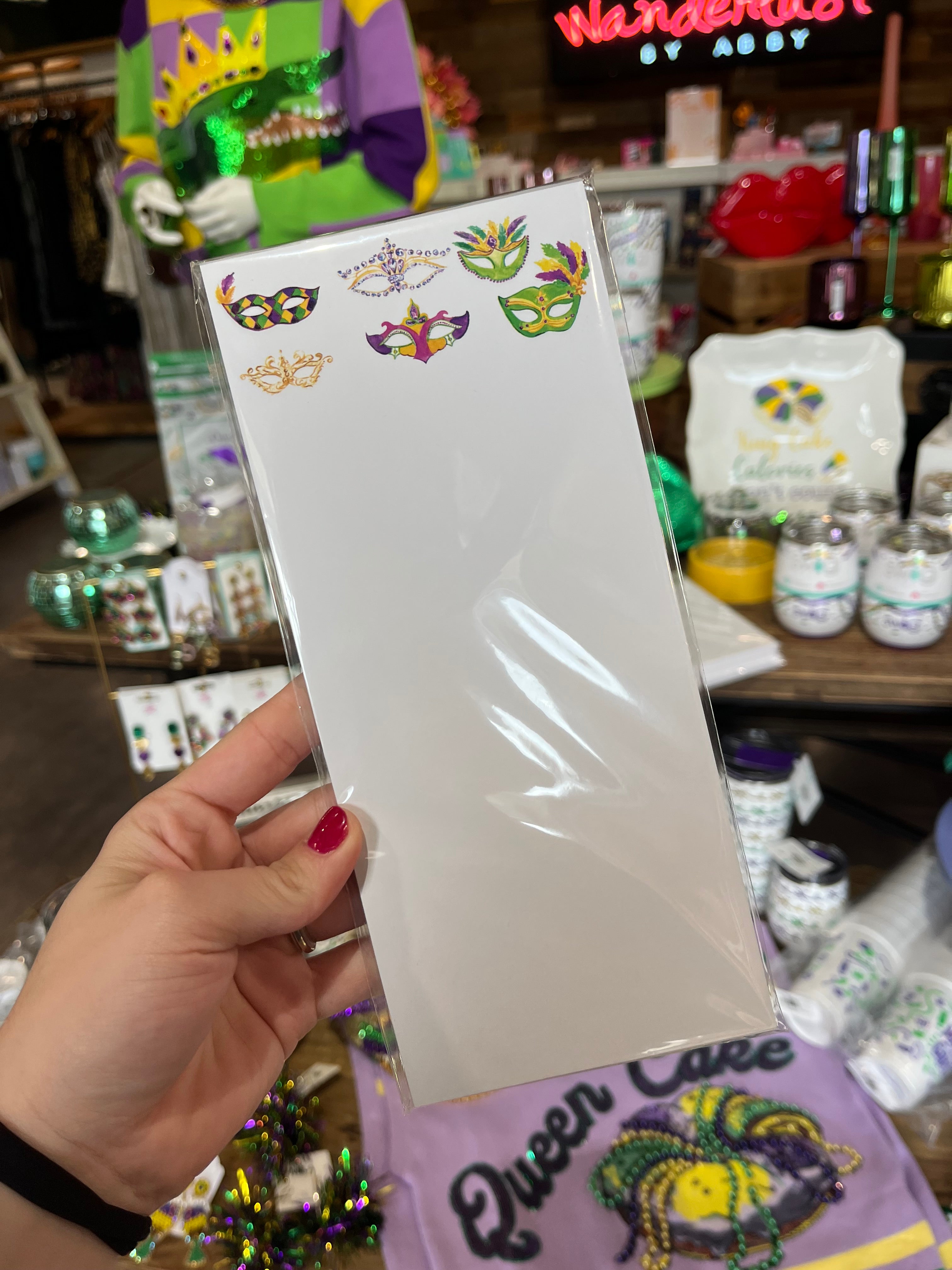 Capture your Mardi Gras planning in style with this vibrant lists pad featuring Taylor Paladino's iconic mask designs. Perfect for organizing party details, guest lists, costume ideas, and celebration notes, this pad brings festive flair to your planning process. The colorful Mardi Gras aesthetic inspires creativity while keeping you organized. Whether you're coordinating events, tracking decorations, or jotting down last-minute ideas, this functional pad transforms everyday planning into a celebration. Make your preparations as memorable as the festivities themselves.