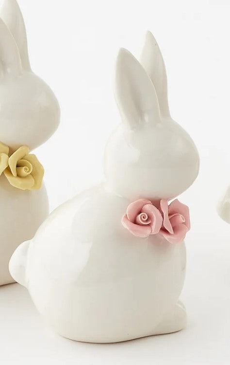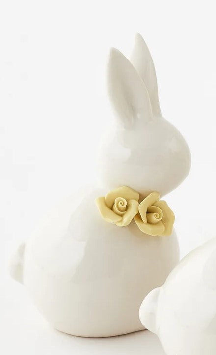 Bring whimsical charm to any space with this delightful sitting bunny figurine. Crafted from fine porcelain, this 5.5" collectible features an adorable bunny in a seated pose, holding a cheerful flower. Perfect for spring décor, shelf displays, or as a thoughtful gift for bunny lovers and collectors. The smooth porcelain finish and gentle details make it a timeless addition to your home that sparks joy and conversation.