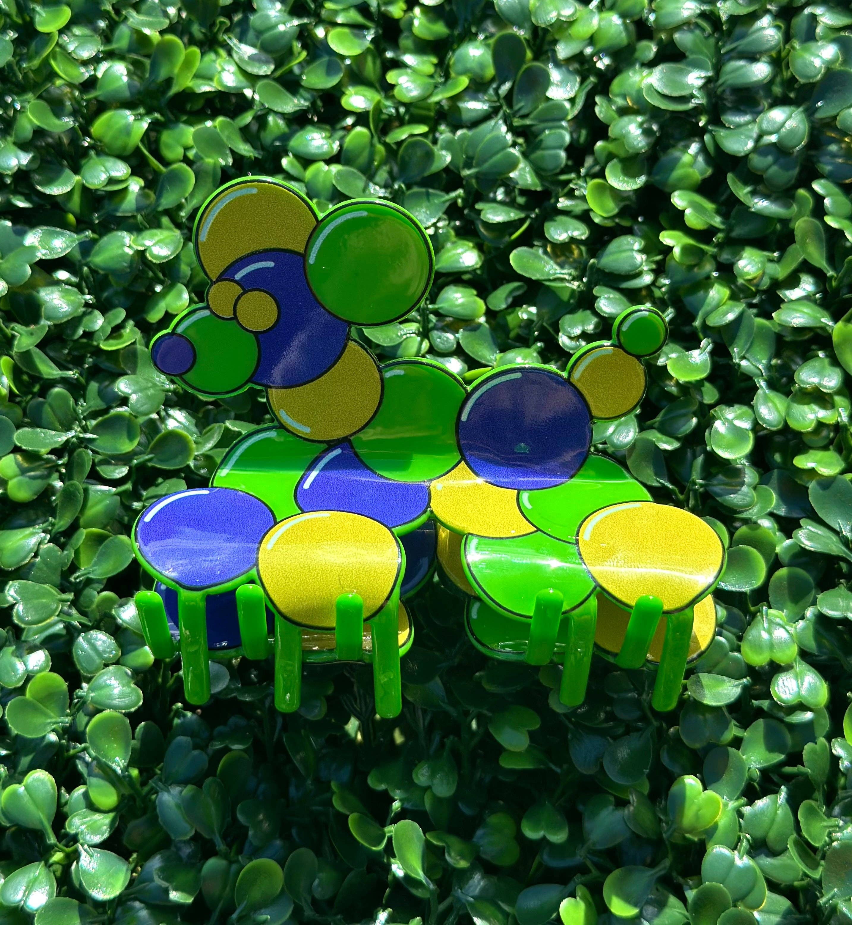 Transform your hair into a festive statement with this charming La Luna Belle Bead Dog claw clip. Adorned with playful beadwork featuring a beloved canine design, this accessory captures the joyful essence of Mardi Gras celebrations. The sturdy claw mechanism grips securely, keeping your hair styled beautifully throughout the day without slipping or sliding. Perfect for festival season or whenever you want to add personality to your look, this clip merges practicality with whimsical design. Show off your festive spirit and love for New Orleans tradition with this delightful accessory that's sure to earn compliments wherever you go.
