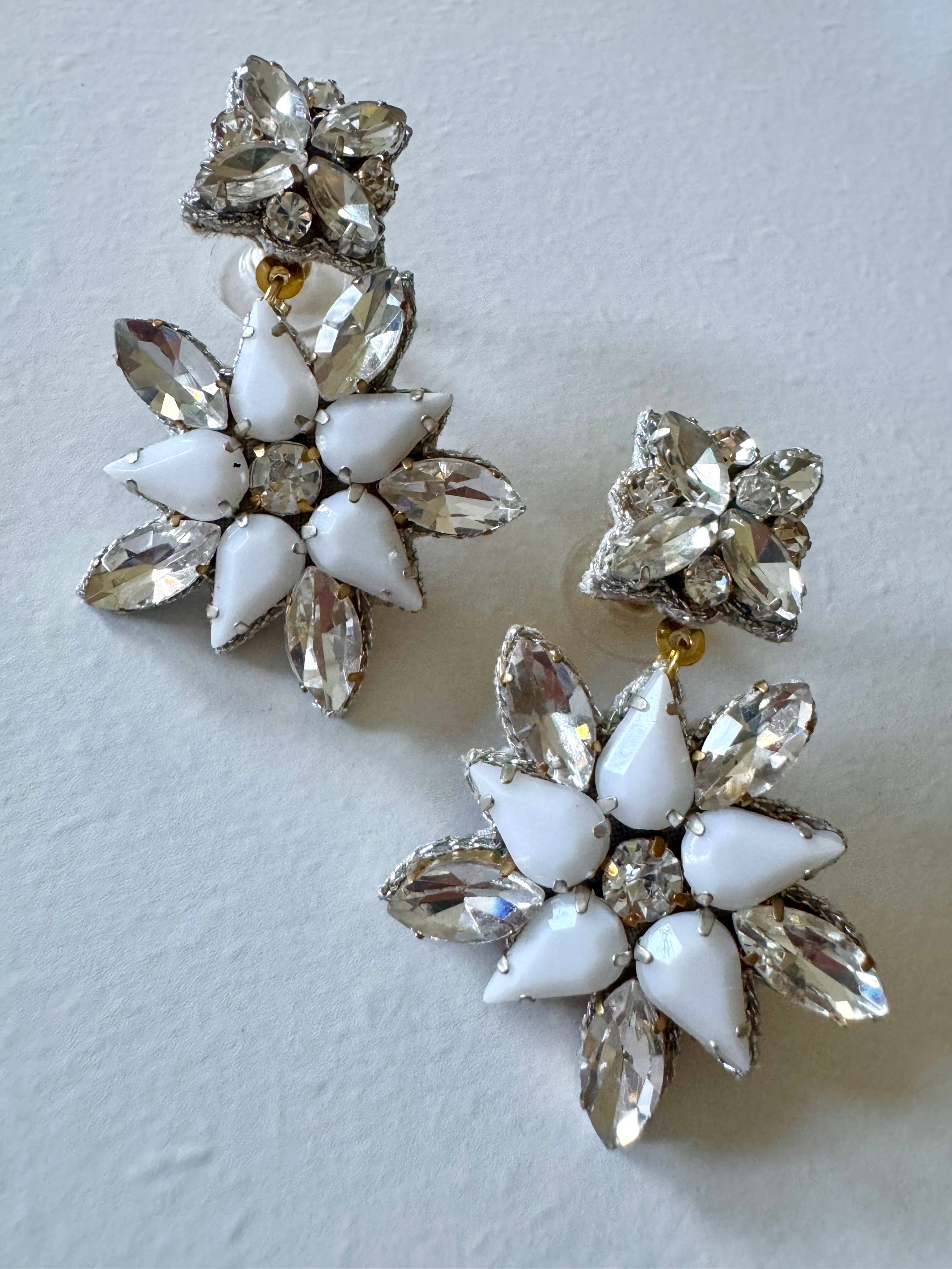 Louie Love Beaded White Snowflake Poinsettia Christmas Earrings