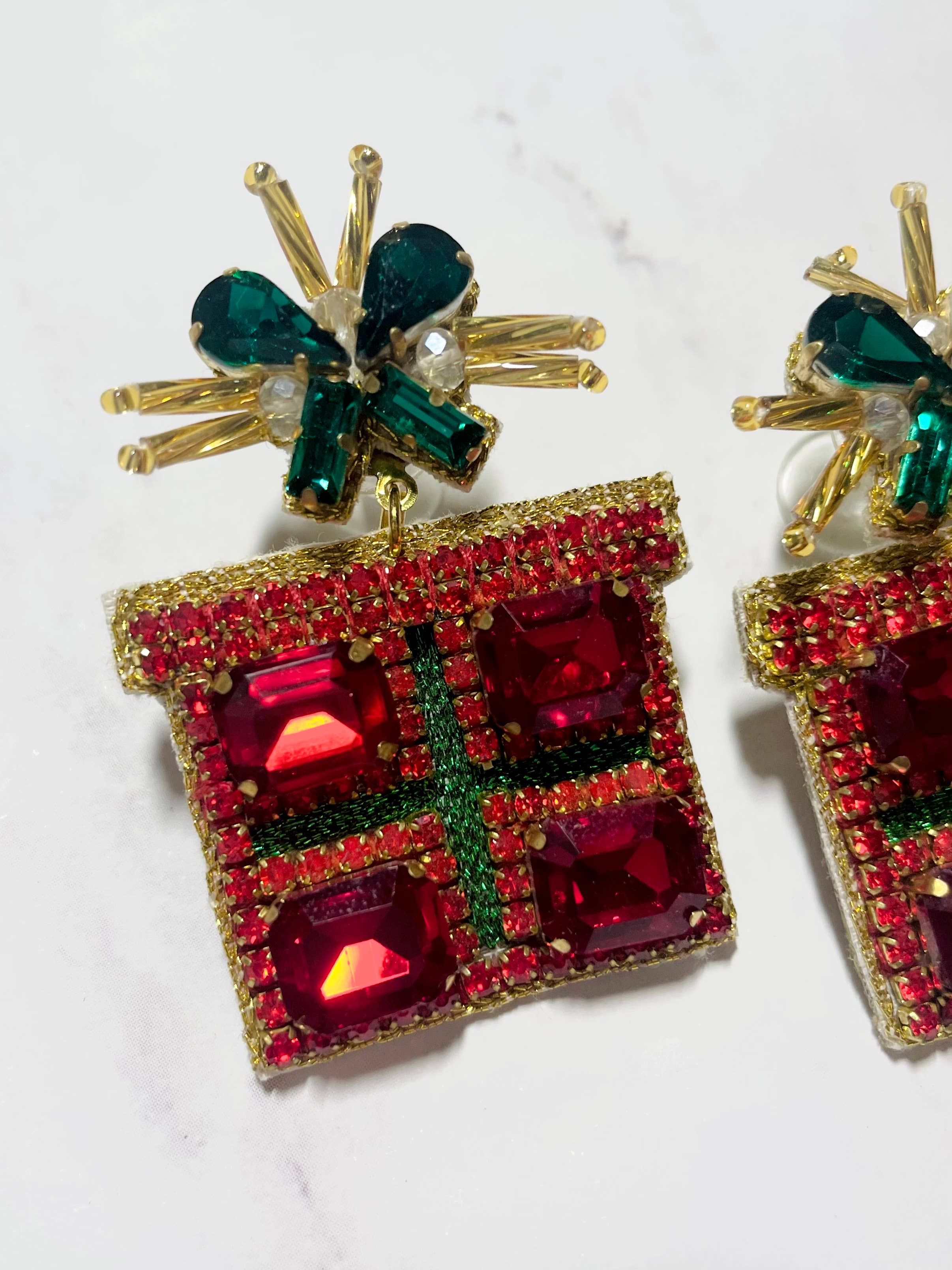 Louie Love Christmas Jewelry Beaded Green Red Holiday Present Earrings