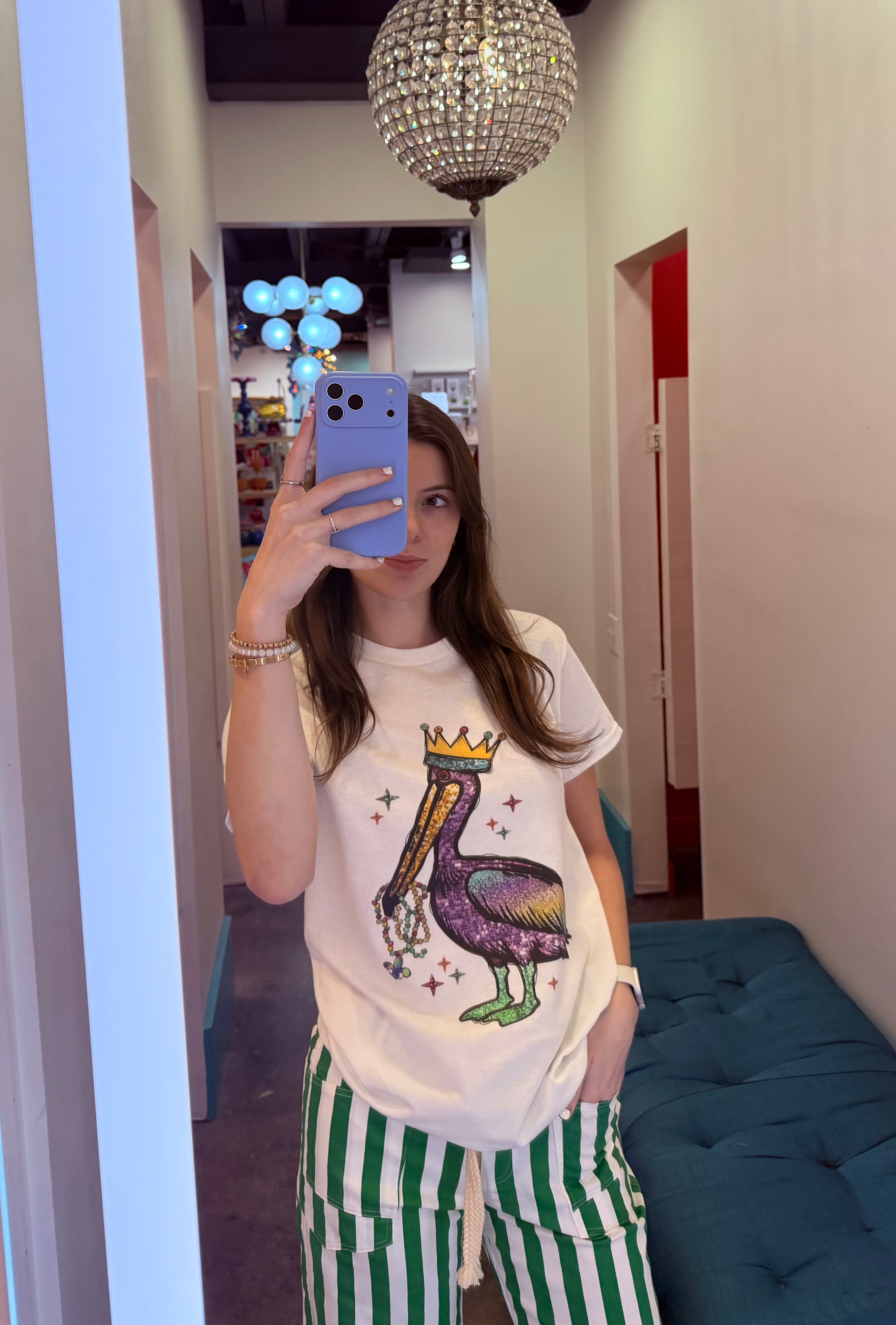 Celebrate the vibrant spirit of New Orleans with this striking Mardi Gras Pelican T-Shirt. Featuring the iconic Louisiana state bird adorned in festive carnival colors, this tee captures the energy and tradition of America's most legendary celebration. Perfect for parade season, themed parties, or anyone who loves bold, eye-catching designs with cultural flair. Crafted for comfort and style, it's an essential addition to your Mardi Gras wardrobe that lets your personality shine as bright as the French Quarter itself.