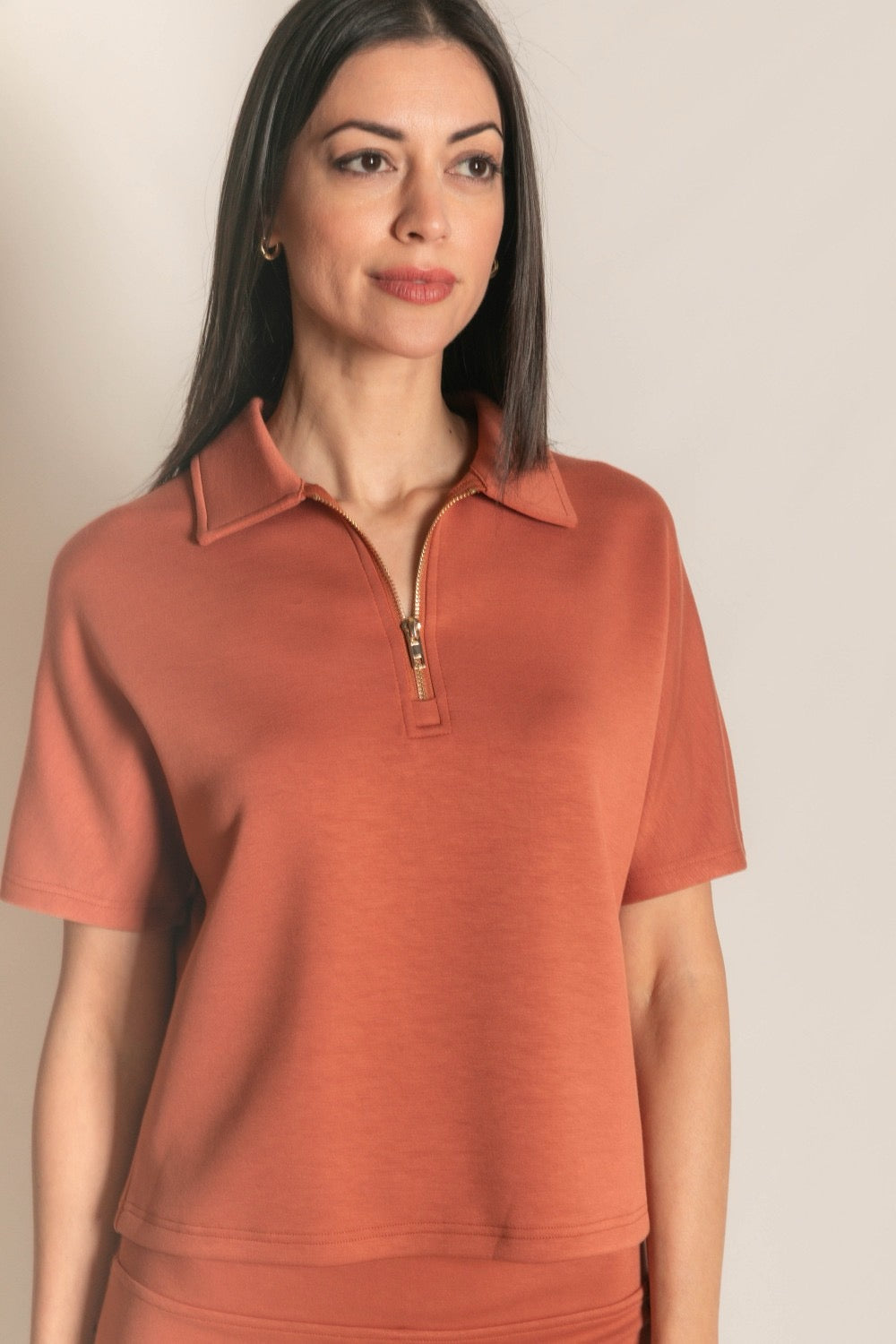 Elevate your casual wardrobe with this dusty rose quarter zip top, featuring a soft short sleeve design perfect for layering or wearing solo. The subtle, muted tone pairs effortlessly with your everyday essentials, while the quarter zip detail adds versatile styling options. Comfortable and chic, this piece transitions seamlessly from weekend outings to relaxed workdays. Available now at our Baton Rouge location.