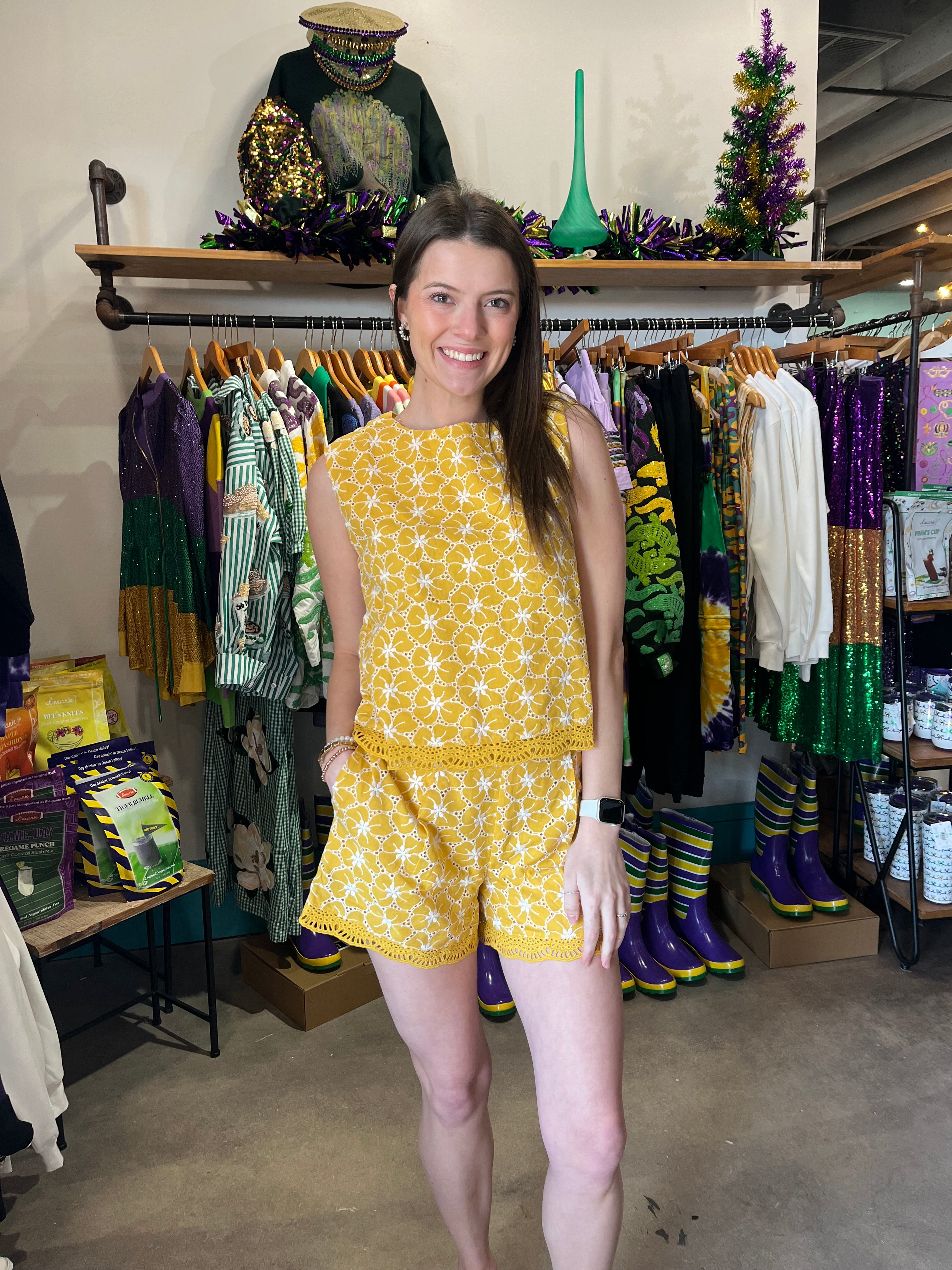 Brighten your warm-weather wardrobe with these stunning yellow shorts from Skies are Blue. Delicate embroidered lace trim adds an elegant, feminine touch that elevates any casual look. Perfect for summer adventures, beach days, or relaxed weekend outings, these shorts combine comfort with sophisticated style. The vibrant yellow hue flatters all skin tones and pairs effortlessly with neutral tops or bold prints. Whether you're exploring new destinations or enjoying time at home, these versatile shorts deliver the perfect blend of chic design and everyday wearability.