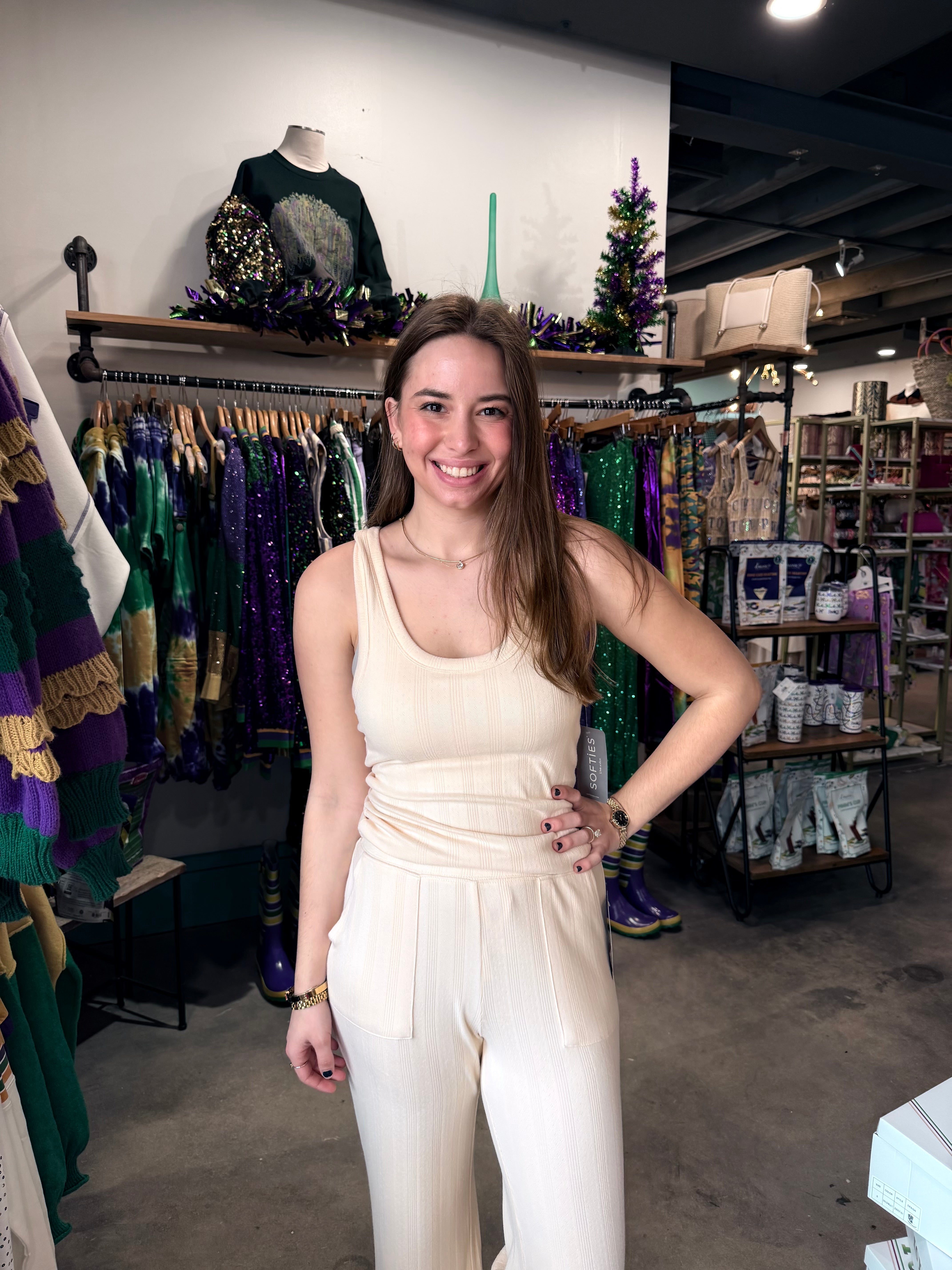 Slip into effortless comfort with our Softies Warm Sand Tank, designed with a supportive shelf bra that moves with you. The soft, breathable fabric in a versatile warm sand tone flatters every complexion and pairs seamlessly with your favorite bottoms. Whether you're heading to the gym, running errands, or relaxing at home, this tank delivers the perfect blend of style and support. The built-in shelf bra eliminates the need for layering, giving you a streamlined silhouette without compromise. Lightweight yet durable, it's the everyday essential that works as hard as you do.