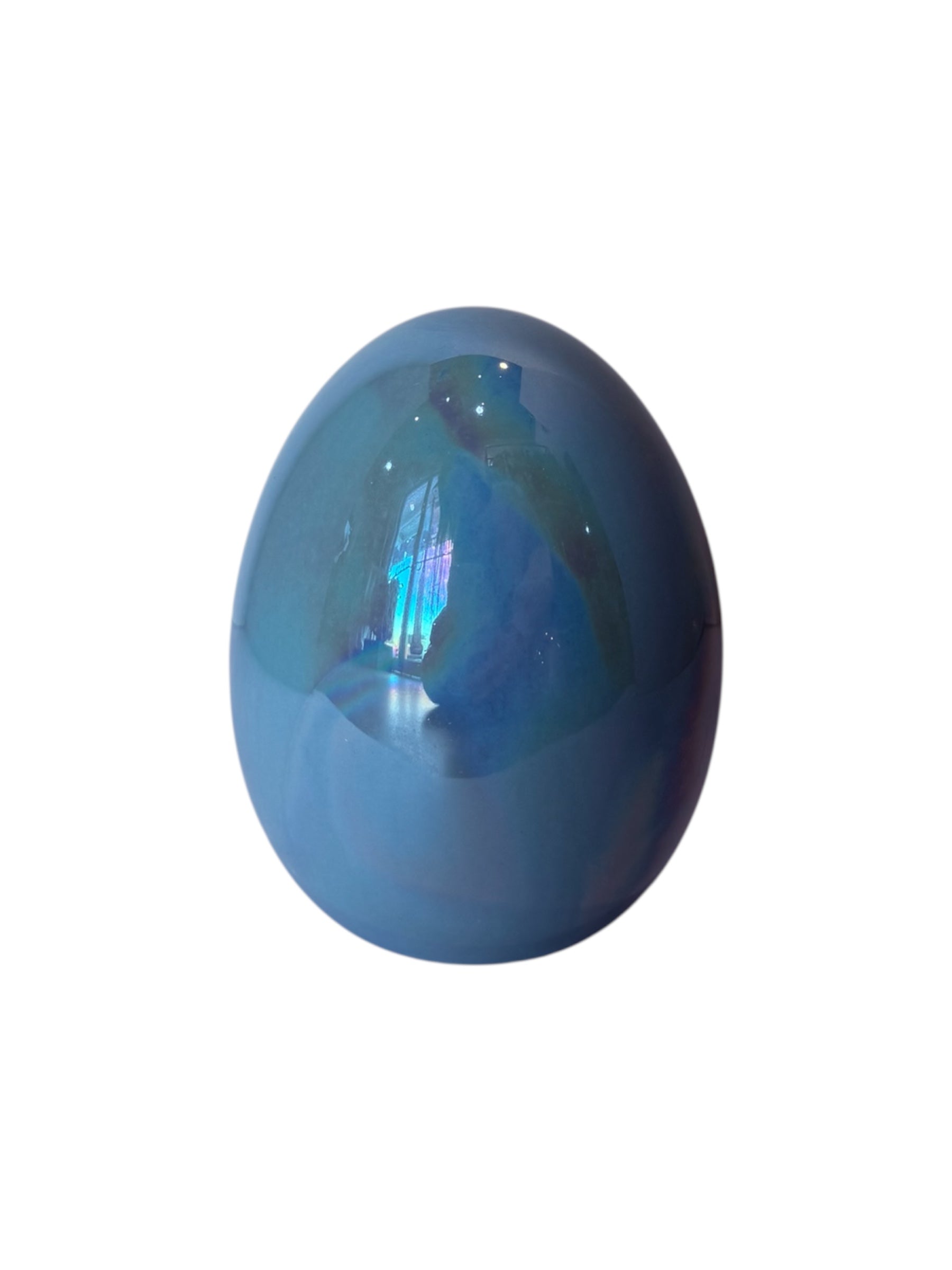 Discover the mesmerizing beauty of our 180 Degree Iridescent Egg, where light dances across every surface in a stunning spectrum of colors. This captivating piece shifts and shimmers with iridescent hues that transform with every angle and lighting condition, creating an ever-changing visual experience. Perfect for collectors, home décor enthusiasts, or anyone seeking a conversation-starting accent piece, this egg brings an enchanting touch of wonder to any space. Watch as blues, purples, greens, and golds emerge and blend in a natural light show that never gets old.
