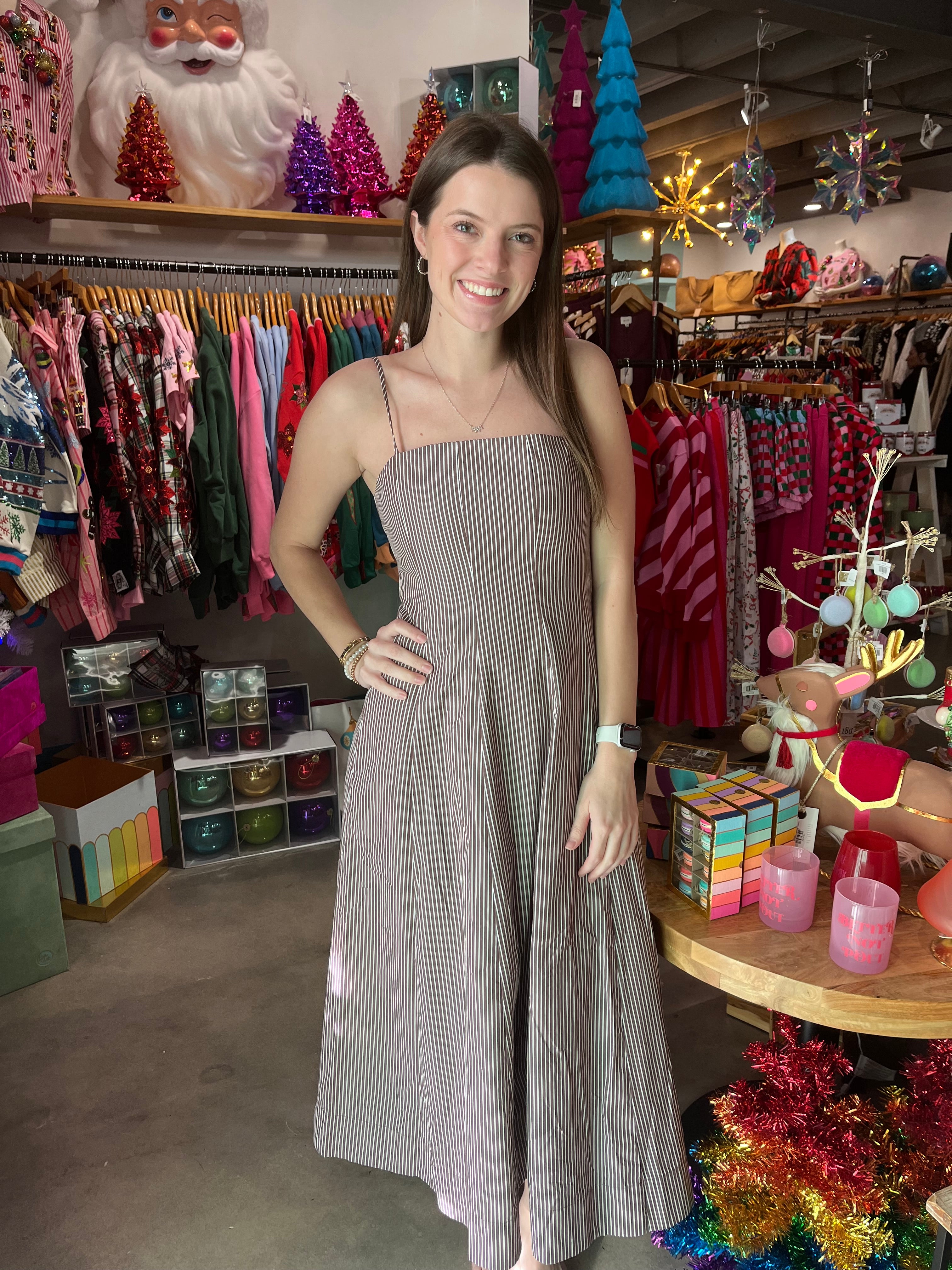 This stunning Aureum Brown Striped Panel Midi Dress is a must-have addition to any wardrobe. The dress is designed with a classic striped pattern, and its midi length adds a touch of elegance. The perfect blend of style and comfort, this dress is versatile for any occasion. Elevate your fashion game with this timeless piece!