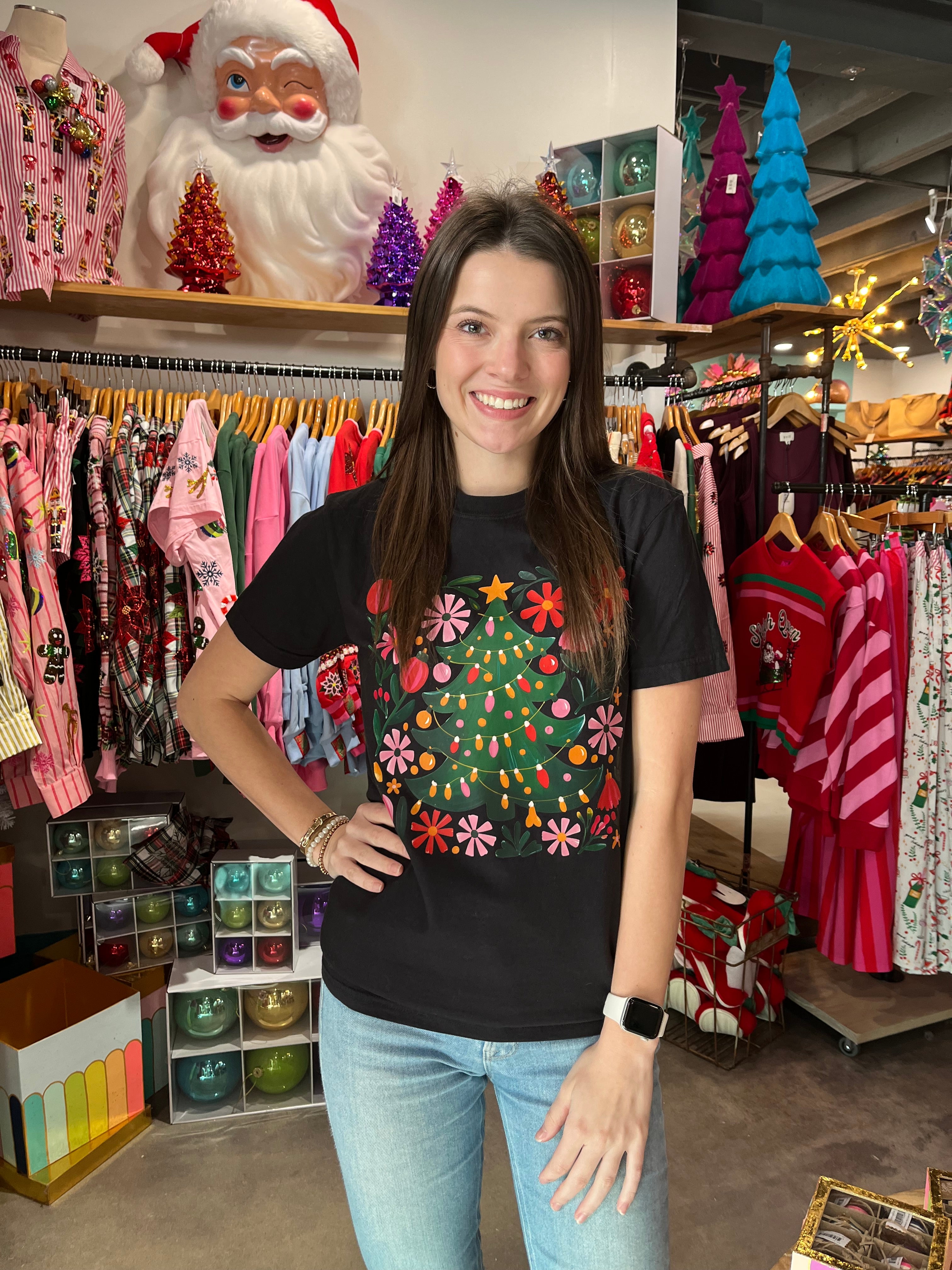 Make a bold statement this holiday season with the Black Coquette Christmas Tree Tee. This sophisticated piece brings timeless elegance to festive celebrations, blending edgy charm with refined femininity. The sleek black backdrop creates the perfect canvas for eye-catching holiday style that works from casual outings to intimate gatherings. Versatile enough to layer or wear solo, this tee effortlessly transitions from day to night while keeping you comfortable and chic. Elevate your Christmas wardrobe with a piece that proves holiday fashion doesn't have to be predictable—choose understated glamour instead.