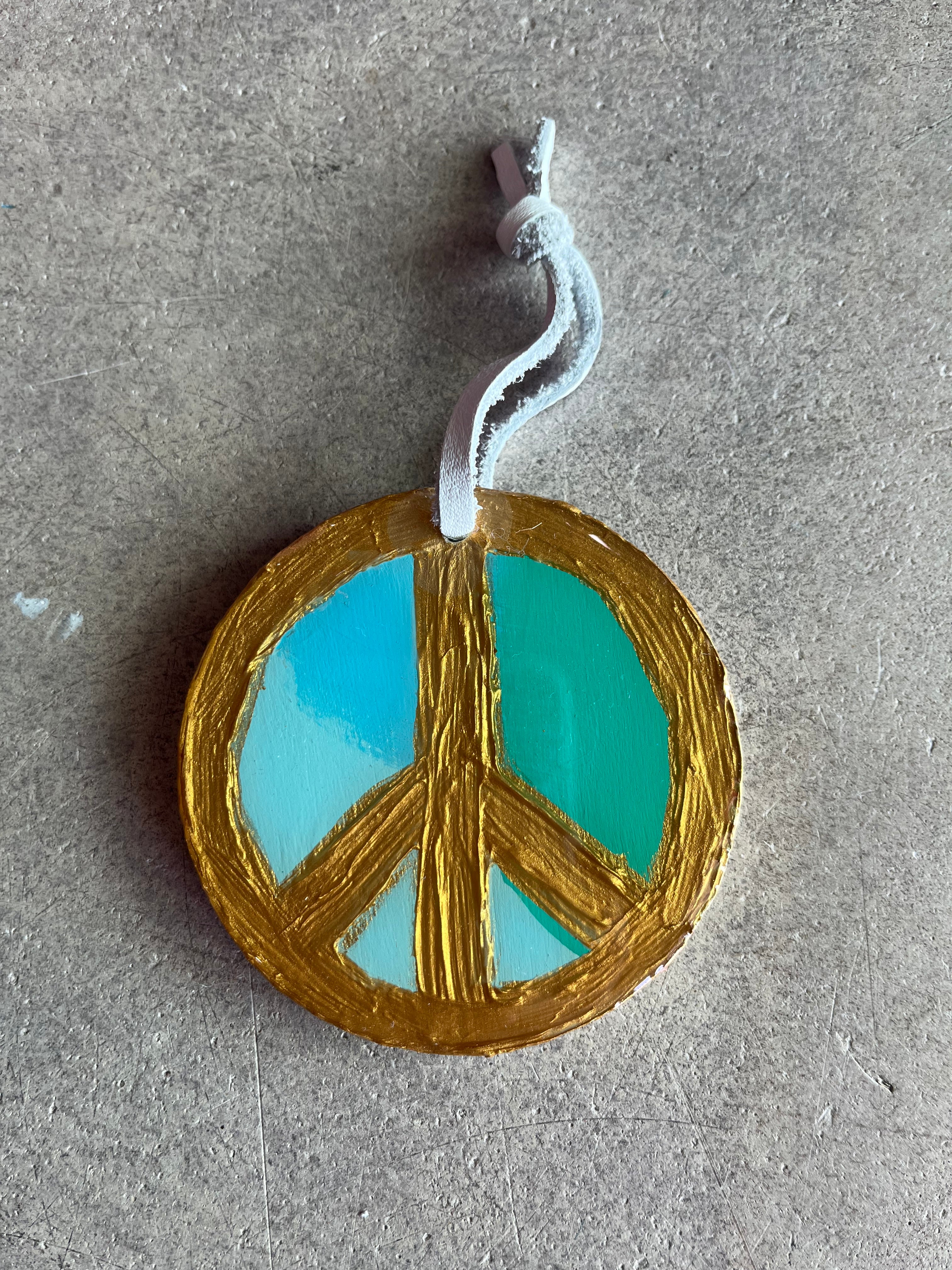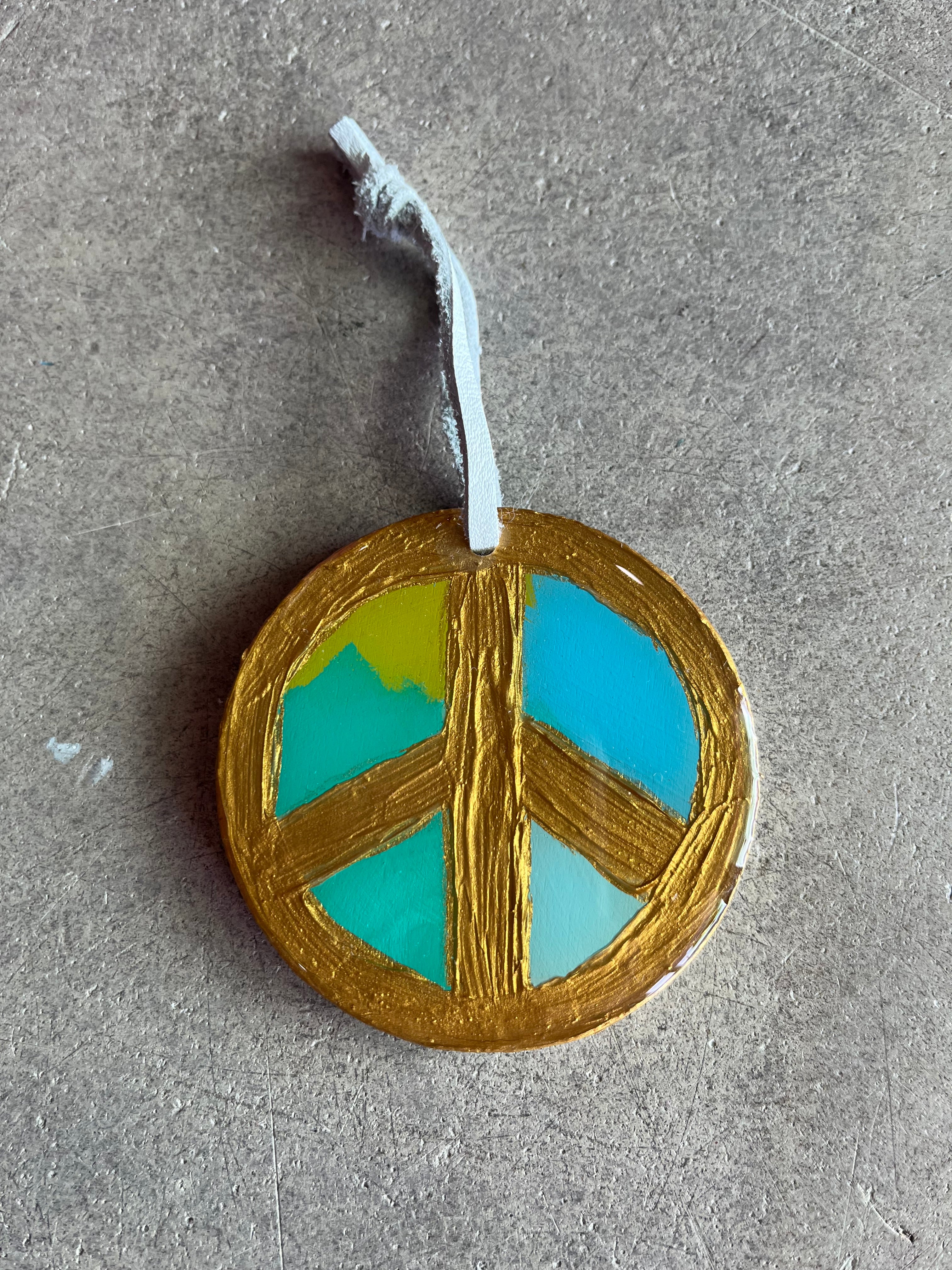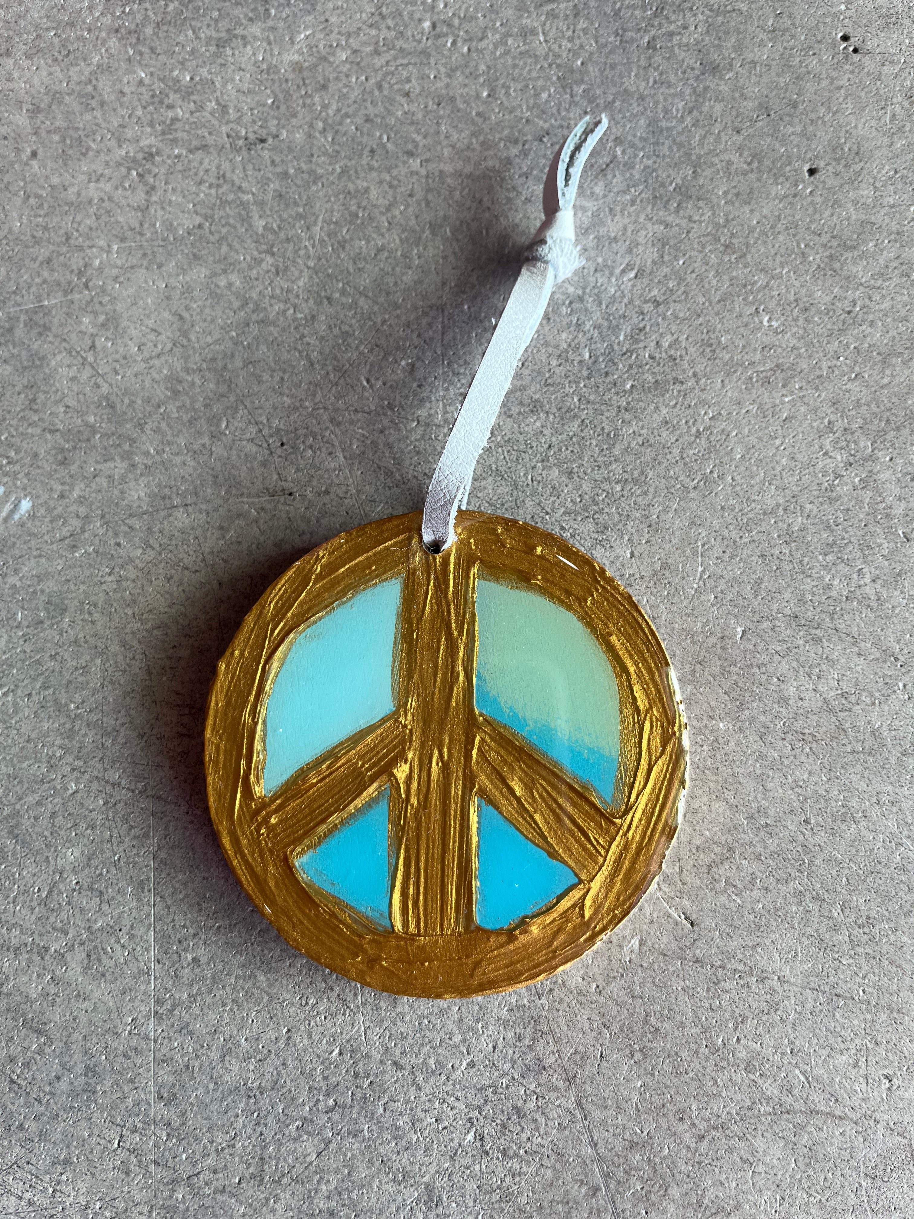 Bring meaningful symbolism to your holiday tree with these exquisite handmade gold peace sign ornaments. Each piece is meticulously crafted to capture the essence of harmony and hope, making them perfect for spreading positive vibes throughout the season. The warm gold finish adds an elegant touch to any décor style, while the timeless peace symbol serves as a beautiful reminder of what matters most. Whether you're decorating your own home or gifting to someone special, these ornaments blend artisanal craftsmanship with universal meaning. Create a tree that reflects your values and inspires peace in every corner of your space.