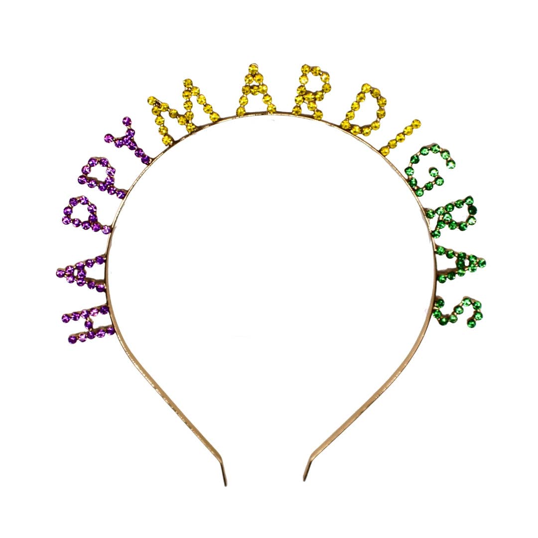 Light up any celebration with this stunning Mardi Gras rhinestone headband. Adorned with glittering crystals in festive purple, green, and gold, it's designed to make you the center of attention. The soft plush band ensures all-day comfort, so you can celebrate without compromise. Whether you're attending a parade, party, or themed event, this accessory delivers the perfect blend of glamour and wearability. Stand out from the crowd and embrace the joy of the season with this show-stopping piece.