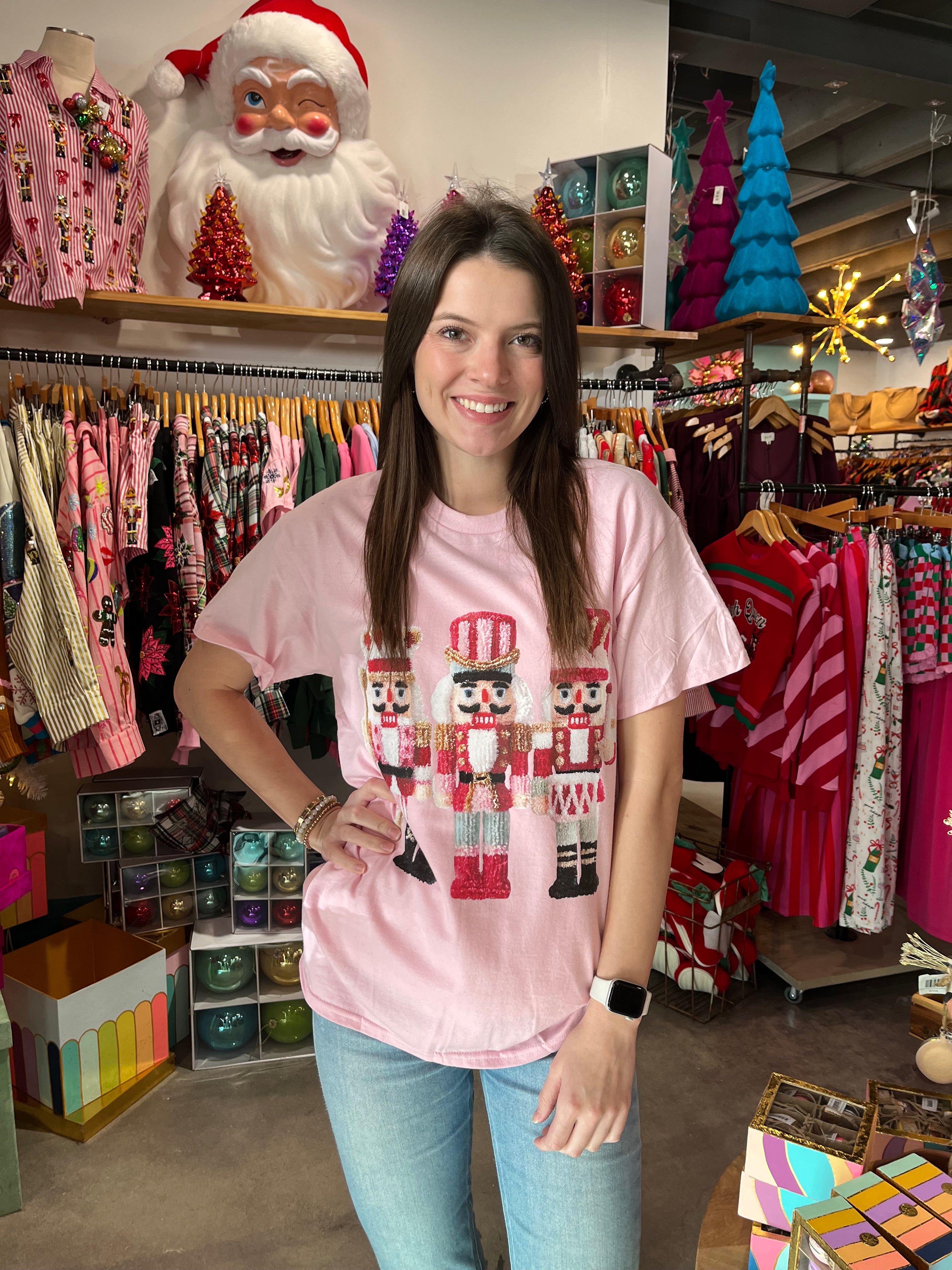 Embrace festive femininity with the Light Pink Latch Hook Yarn Crochet Nutcracker Tee. This delightful piece combines soft, romantic aesthetics with intricate latch hook yarn detailing that captures the whimsy of a beloved holiday classic. The gentle blush tone creates an inviting, approachable look that feels both nostalgic and modern. Perfect for those who love handmade charm and vintage-inspired design, this tee celebrates the season with personality and grace. Whether you're attending holiday parties or enjoying quiet seasonal moments, this piece delivers effortless elegance with a playful twist. Choose a tee that reflects your unique style while spreading Christmas joy in the most charming way possible.