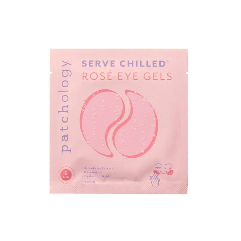 Your skin’s happy hour — and the ultimate pre-makeup patch.Patchology Serve Chilled™ Rosé Hydrogel Eye Patches drench under-eyes in hydration and antioxidants, leaving them smooth, bright, and perfectly prepped in just 5 minutes. Powered by resveratrol (an antioxidant from grapes), hyaluronic acid, and strawberry extract, these pink gels protect against environmental stressors while plumping and softening for a refreshed, radiant look. With HydraSurge5™ Complex, ingredients absorb quickly so your concealer glides on smoothly and stays flawless.