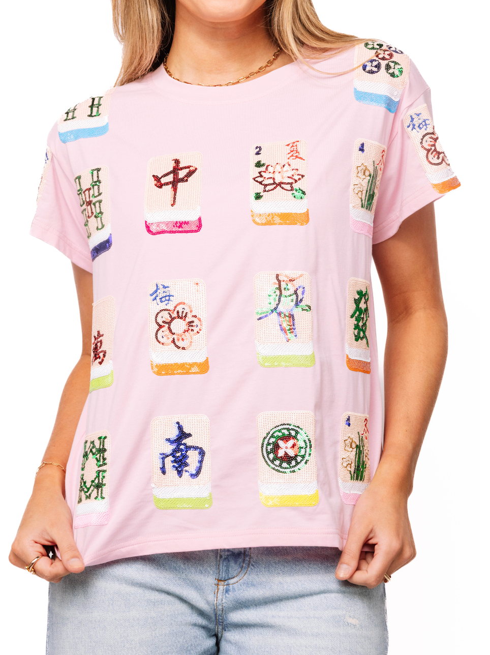 Celebrate the timeless game of mahjong with this playful light pink tee featuring scattered tile designs. The soft, comfortable fabric makes it perfect for casual wear, while the unique graphic adds a touch of cultural flair to your everyday wardrobe. Whether you're a mahjong enthusiast or simply love distinctive, conversation-starting apparel, this tee delivers style with personality. Pair it with your favorite jeans or shorts for an effortlessly cool look.