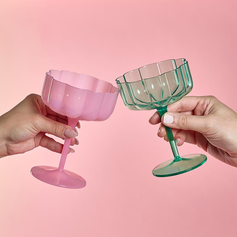Entertain with confidence using this vibrant set of four green and pink plastic coupe glasses that deliver style without the worry. Ideal for poolside gatherings, outdoor celebrations, and casual entertaining, these durable glasses combine the elegance of traditional coupes with the practicality of shatterproof plastic. The stunning two-tone design makes every drink feel special while the lightweight construction makes them easy to transport and serve. Perfect for brunches, garden parties, or everyday enjoyment, this set lets you host with flair and peace of mind. Cheers to stress-free entertaining!