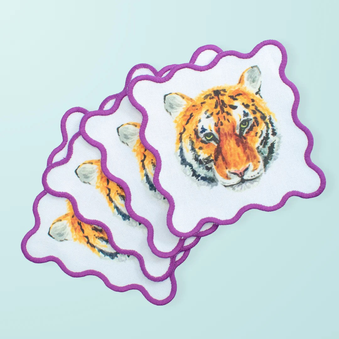 Make a bold statement with Taylor Paladino Cocktail Squares showcasing a striking tiger face design. These artistic pieces capture the fierce beauty and majesty of wildlife, bringing an adventurous edge to your home décor. Perfect for animal enthusiasts, nature lovers, and those seeking distinctive accent pieces, they infuse any room with personality and intrigue. Whether you're decorating a modern space or adding to an eclectic collection, these cocktail squares serve as eye-catching focal points that spark conversation. Ideal for gifting to the wild-spirited individual or displaying as a testament to your bold aesthetic taste.