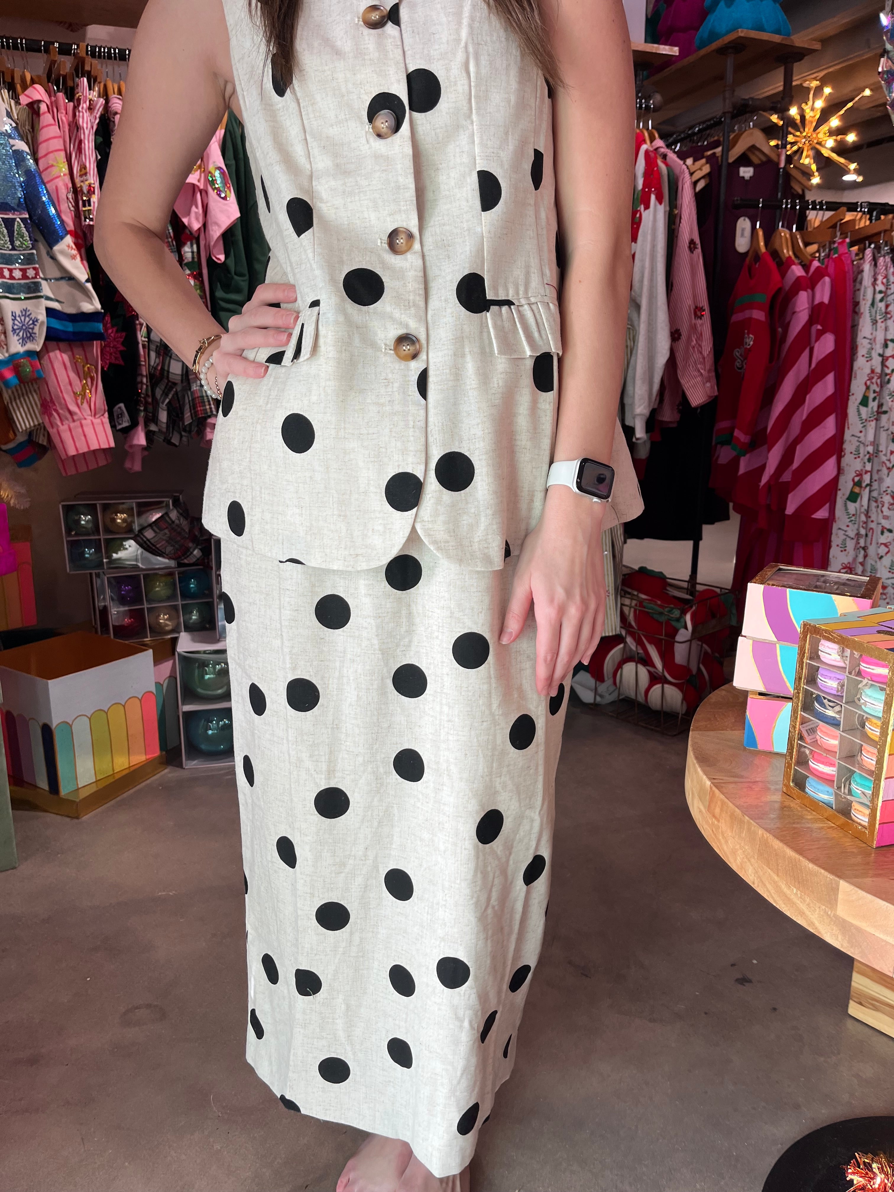 Discover effortless style with this ivory linen midi skirt, adorned with delicate polka dots that bring timeless charm to your collection. Made from lightweight, breathable linen, it's designed for those who value comfort without sacrificing sophistication. The flowing midi silhouette flatters every figure while the neutral ivory tone pairs seamlessly with your existing wardrobe staples. Whether you're jet-setting across continents or enjoying local adventures, this versatile skirt transitions beautifully from casual daytime looks to polished evening ensembles. A wardrobe essential for the modern traveler.