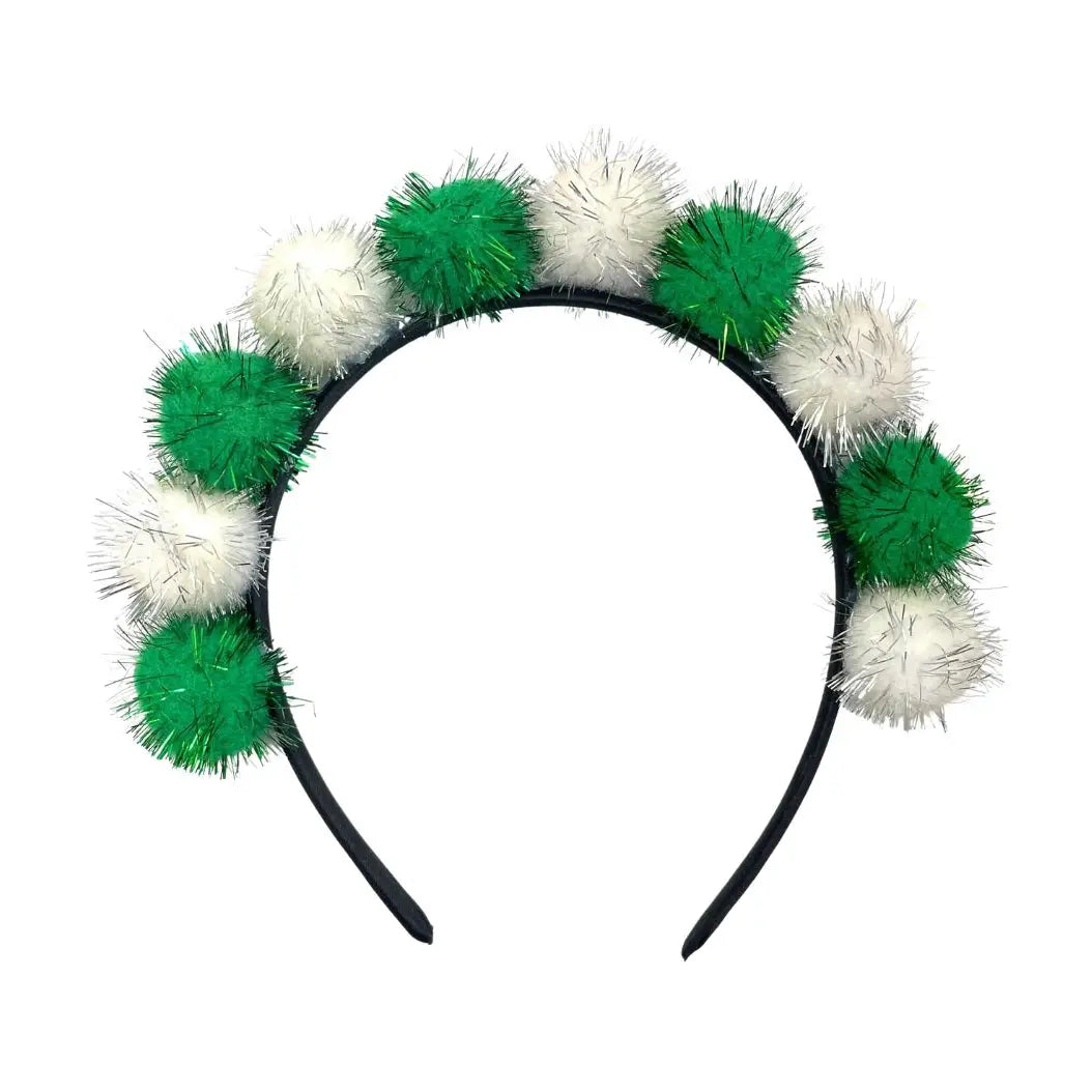 Elevate your festive style with this eye-catching green and white tinsel pompom headband. Featuring plush, oversized pompoms adorned with shimmering tinsel accents, this headband adds instant personality to any outfit. Perfect for holiday parties, themed events, or everyday fun, it combines comfort with playful flair. The soft construction ensures all-day wearability without discomfort. Make a statement and spread joy wherever you go with this vibrant accessory.